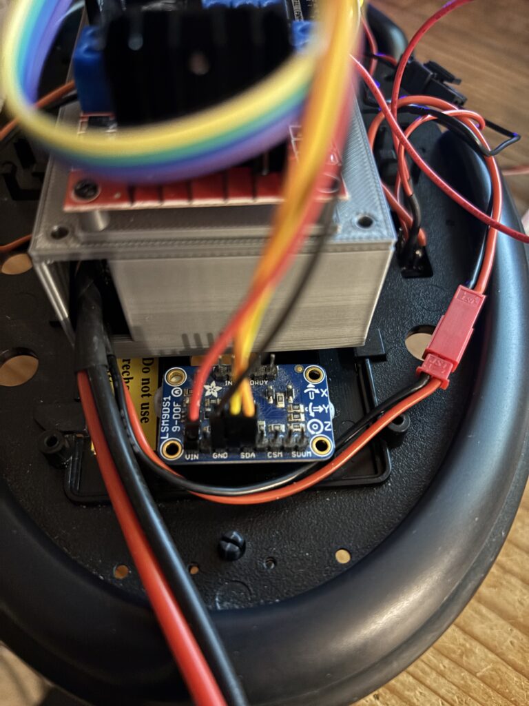 To try and persuade the buggy to move in a straight line, an LSN9DS1 accelerometer/gyro module was added to help control the movement, constraining the movement. This calculates yaw and corrects movement away from a straight line, which is looking promising although some final tuning is required.