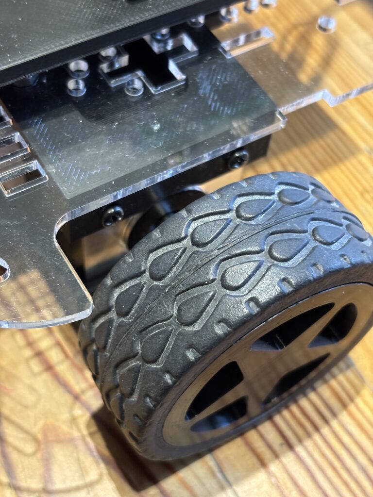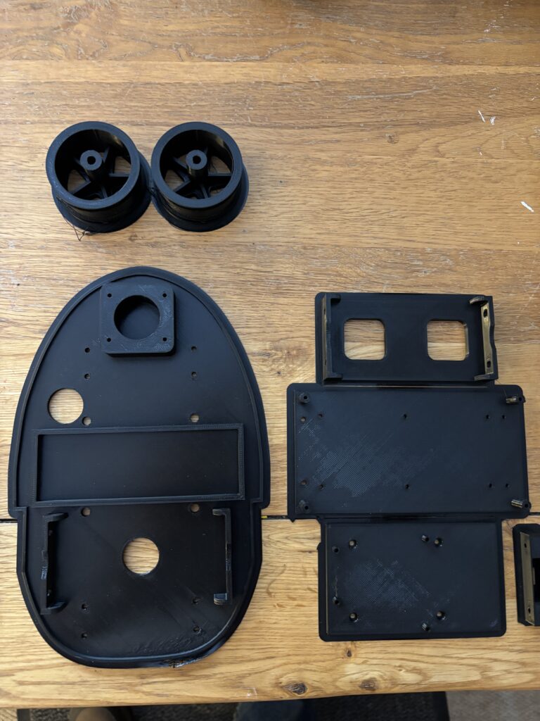 Unfortunately, the wheels supplied with the acrylic buggy did not fit onto the stepper motors, so a new pair that would fit onto the ‘D’ shaped shafts were 3D printed: